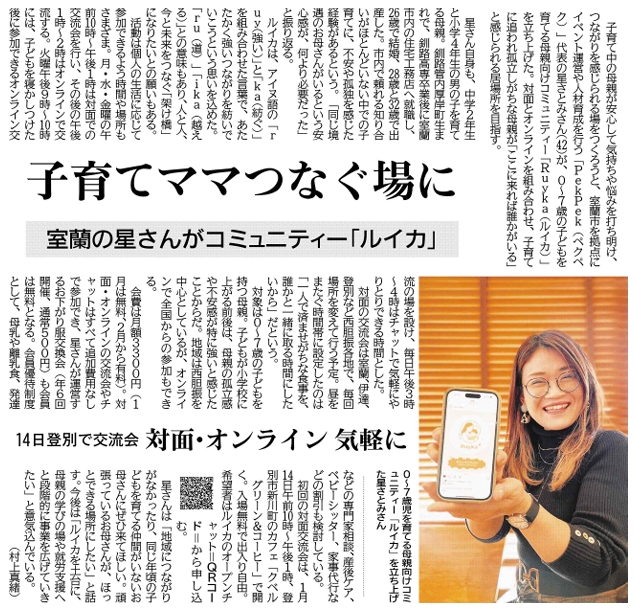 北海道新聞(2026年1月6日)に「ルイカ」の取材記事が掲載されました。 2026年1月6日 最終更新日時 : 2026年1月6日 PekPek \ 最新情報をチェック / FacebookXBlueskyHatenaCopy