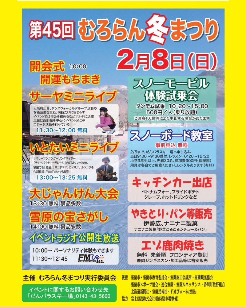 2/8(日)開催! 第45回むろらん冬まつり 2026年2月10日 最終更新日時 : 2026年2月10日 PekPek \ 最新情報をチェック / FacebookXBlueskyHatenaCopy