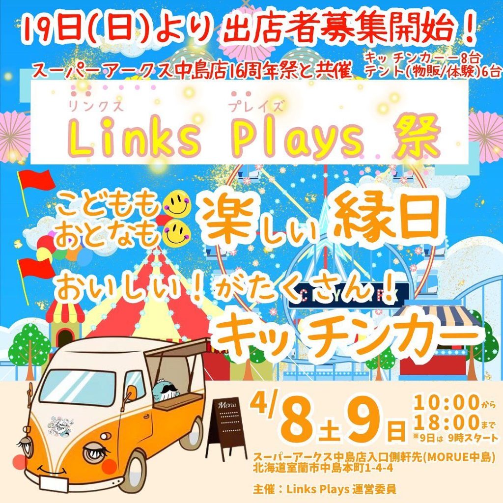 • 2022年4月8日・9日・10日開催 アークス15周年祭と共催!Links Plays in スーパーアークス中島マルシェ